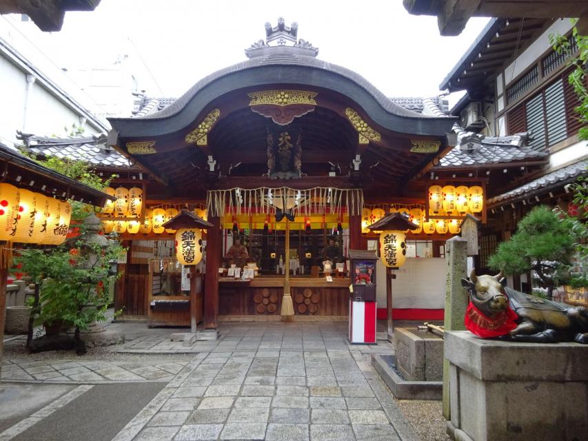 新京極通の中でも多くの人が立ち止まり写真撮影をしている錦天満宮。路地の奥にある訳ではなく、入り口には多くの提灯が掲げられている上、新京極通からも本殿の様子を見ることができるため中の様子がよくわかるためか、海外からの旅行者の拝観も含めて参拝者が多い神社です。