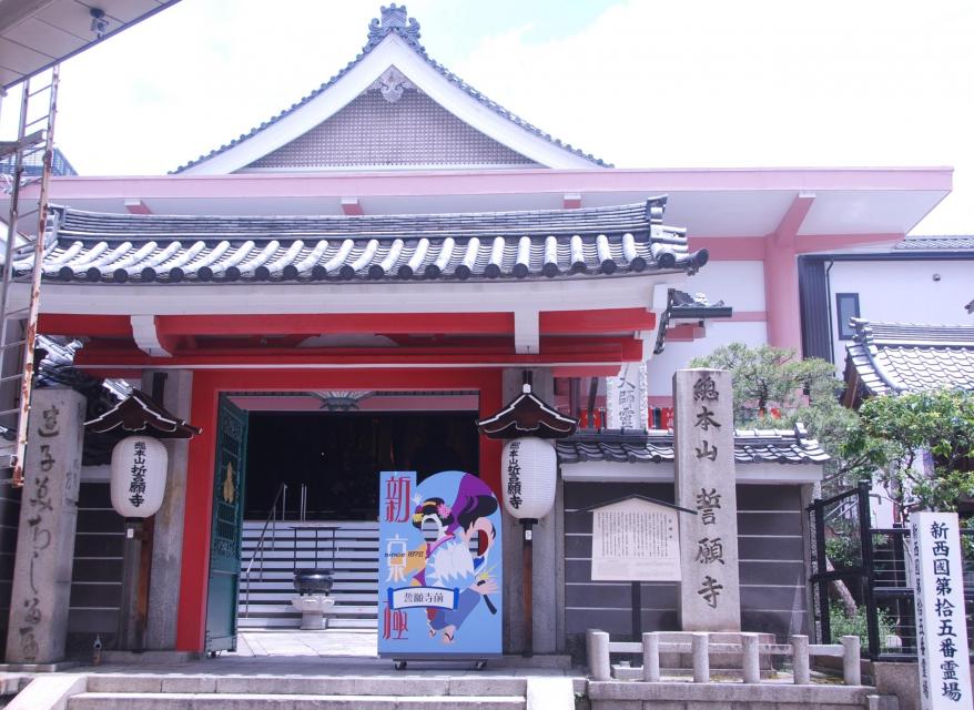 そんなロックンぷらざの三角形の一角に誓願寺があります。高確率で山門に顔出し看板が置かれている、誓願寺。誓願寺前の顔出し看板は封鎖のために置かれている訳ではなく、法務等がない限り自由に本堂に上がらせていただくことができます。